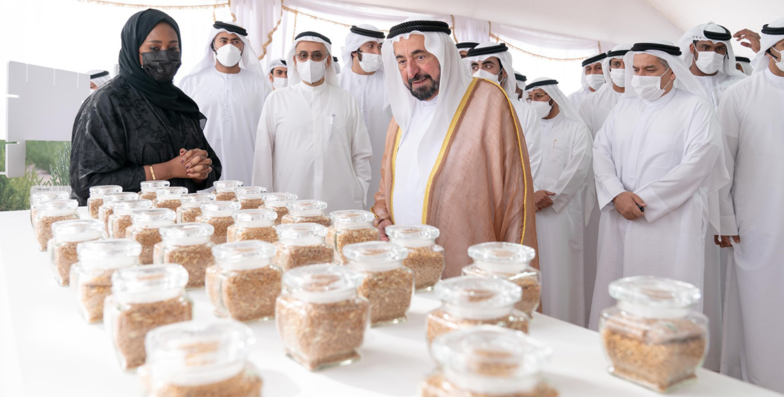 وأثناء الفعالية، استمع صاحب السمو الشيخ الدكتور سلطان بن محمد القاسمي، عضو المجلس الأعلى وحاكم الشارقة، للإحاطة التي قدمتها د. طريفة الزعابي، المدير العام بالإنابة لإكبا، عن أعمال المركز على القمح والطريقة التي يتبعها لتحديد واختبار وحفظ أصناف القمح المناسبة لبيئات مثل بيئة دولة الإمارات العربية المتحدة.