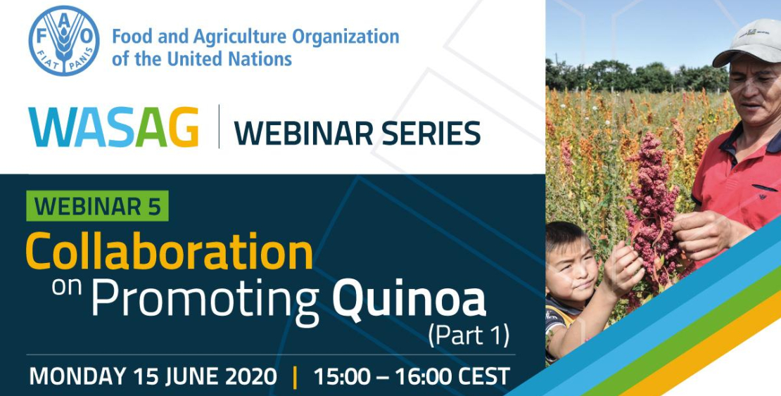 The Global Framework on Water Scarcity in Agriculture (WASAG), hosted by the Land and Water Division of the Food and Agriculture Organization of the United Nations (FAO), is pleased to invite you to join its fifth webinar titled “Collaboration on Promoting Quinoa (Part 1)”.