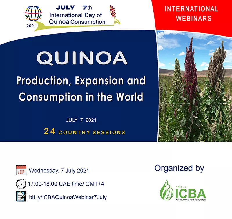 ICBA will also host a webinar to look at ways to promote quinoa production, expansion and consumption in marginal environments. The webinar will offer perspectives from the research, public and private sectors.