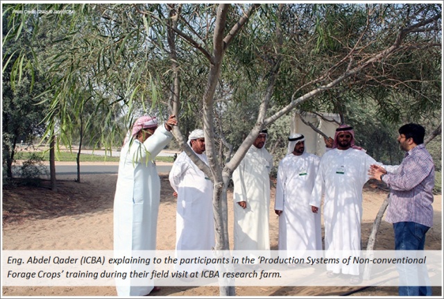 The International Center for Biosaline Agriculture (ICBA) in collaboration with the UAE Ministry of Environment and Water (MOEW) held a 3 day training course on ‘Production Systems on Non-conventional Crops’, 19-21 November 2013, at the ICBA campus in Dubai.