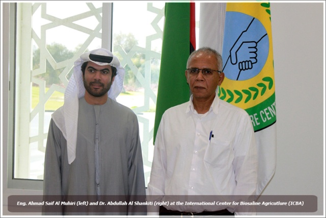A high level meeting took place 23 January 2014, between Eng. Ahmad Saif Al Muhiri, Director of Public Parks and Horticulture Department (Ajman Municipality and Planning Department), and scientists from the International Center for Biosaline Agriculture (ICBA) . This meeting follows on from the conference on the use of treated wastewater in agriculture in the Arab region. Al Muhiri met at ICBA with the team that is currently working on the ‘Study on the Reuse of Biosolids in the Emirate of Ajman’ and discussed various cooperation possibilities between Ajman Municipality and ICBA based on the recommendations that came out of the conference.