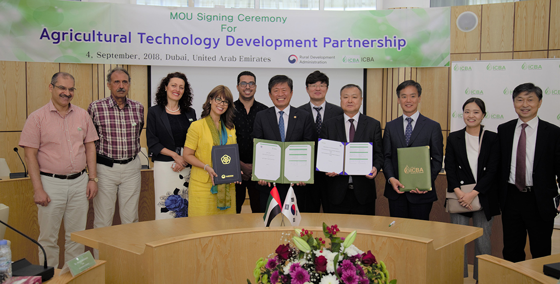 Today the International Center for Biosaline Agriculture (ICBA) and South Korea’s Rural Development Administration (RDA) formed a strategic partnership to work on advanced knowledge and technology exchange for biosaline research and development in the UAE and South Korea.