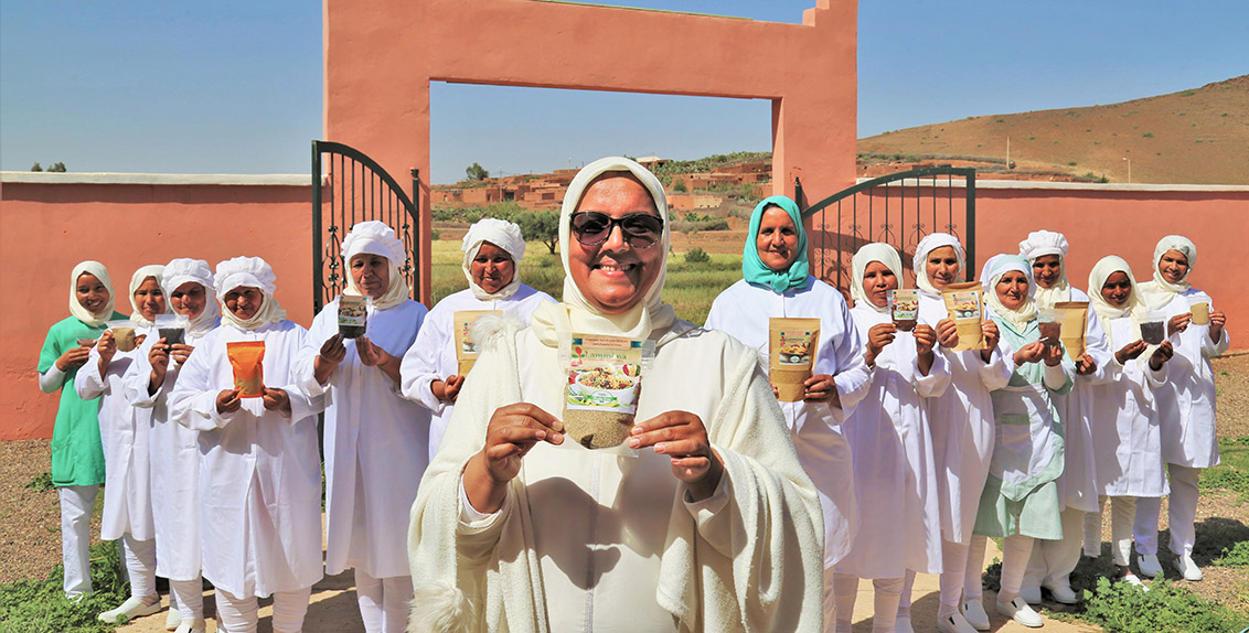 Mrs. Hafida El Filahi says: "Our cooperative was created in a rural area suffering from poverty and drought. The cooperative gathered poor women from the area and gave them jobs. We are producing 30 types of traditional couscous from millet, jujube, cactus, maize and other crops. And we started recently using quinoa to make gluten-free couscous thanks to the project."