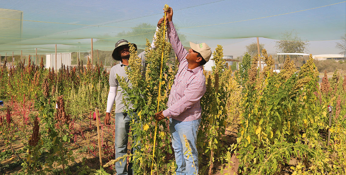 As part of GWAS, scientists have begun analyzing 190 genotypes of quinoa at ICBA’s research station in Dubai, the UAE, for different traits like tolerance to different levels of salinity; flowering duration; plant height; panicle length; branching; days to maturity; seed yield; seed weight; and seed saponin.