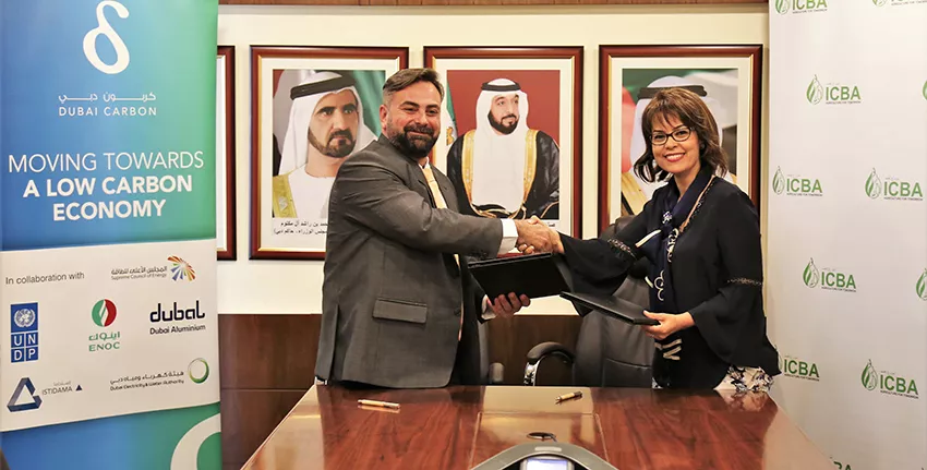 Dubai, UAE, April 8, 2018 – To further strengthen the existing partnership and collaborate more closely in sustainable agriculture and development, the International Center for Biosaline Agriculture (ICBA) and the Dubai Carbon Centre of Excellence (DCCE) joined forces today to work together on sustainability projects. The collaboration was formalized through a Memorandum of Understanding (MoU) signed by Dr. Ismahane Elouafi, Director General of ICBA, and Mr. Ivano Iannelli, Chief Executive Officer of DCCE.