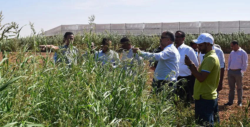 Foum El Oued irrigated perimeter is an economically very important zone in Laayoune region. However, with the overexploitation of aquifer and inefficient management of agricultural inputs groundwater salinity increased which limits the production of traditional cultivated crops (corn, alfalfa, vegetables…etc.). Thus, the need for a sustainable cropping system introducing alternative crops tolerant to salinity is a must to maintain the agricultural activity in the region. It has been observed that soil and water salinity is negatively impacting the crop production in the study area. It is therefore important to understand the existing crop management practices (crop varieties, irrigation systems, salinity management) in Foum El Oued – Laayoune project, to develop management strategies to improve productivity, and to introduce other and alternative salt-tolerant forages developed by ICBA, at INRA experimental station and farmers’ fields.