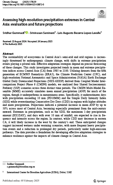 Assessing high-resolution precipitation extremes in Central Asia: evaluation and future projections