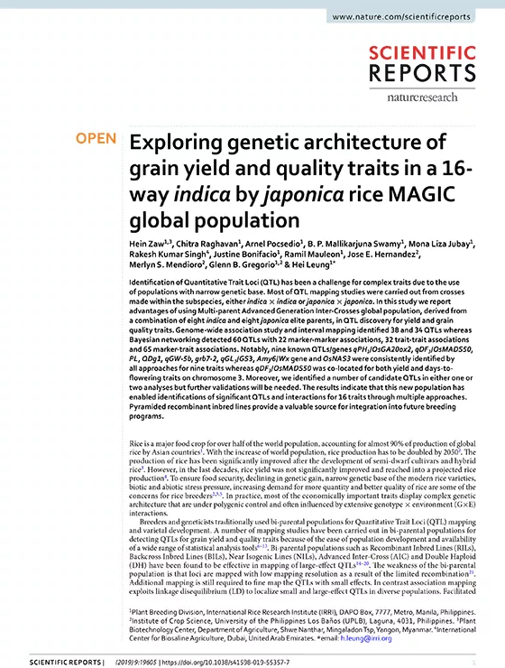 Exploring genetic architecture of grain yield and quality traits in a 16- way indica by japonica rice MAGIC global population
