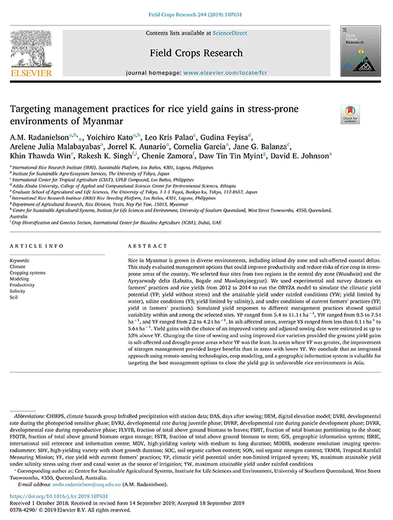Targeting management practices for rice yield gains in stress-prone environments of Myanmar